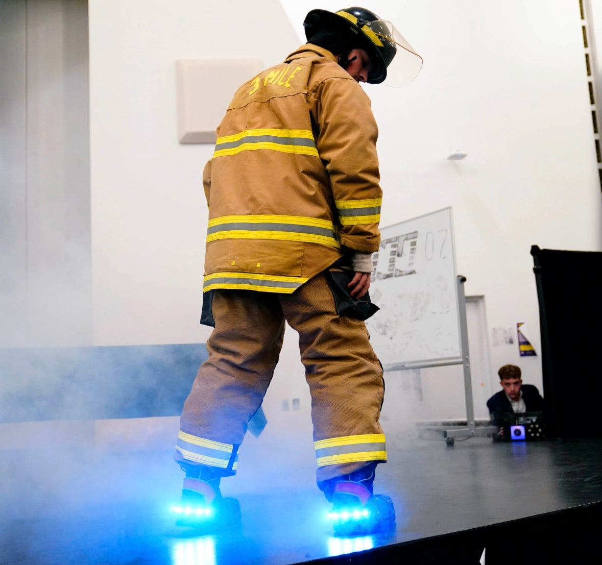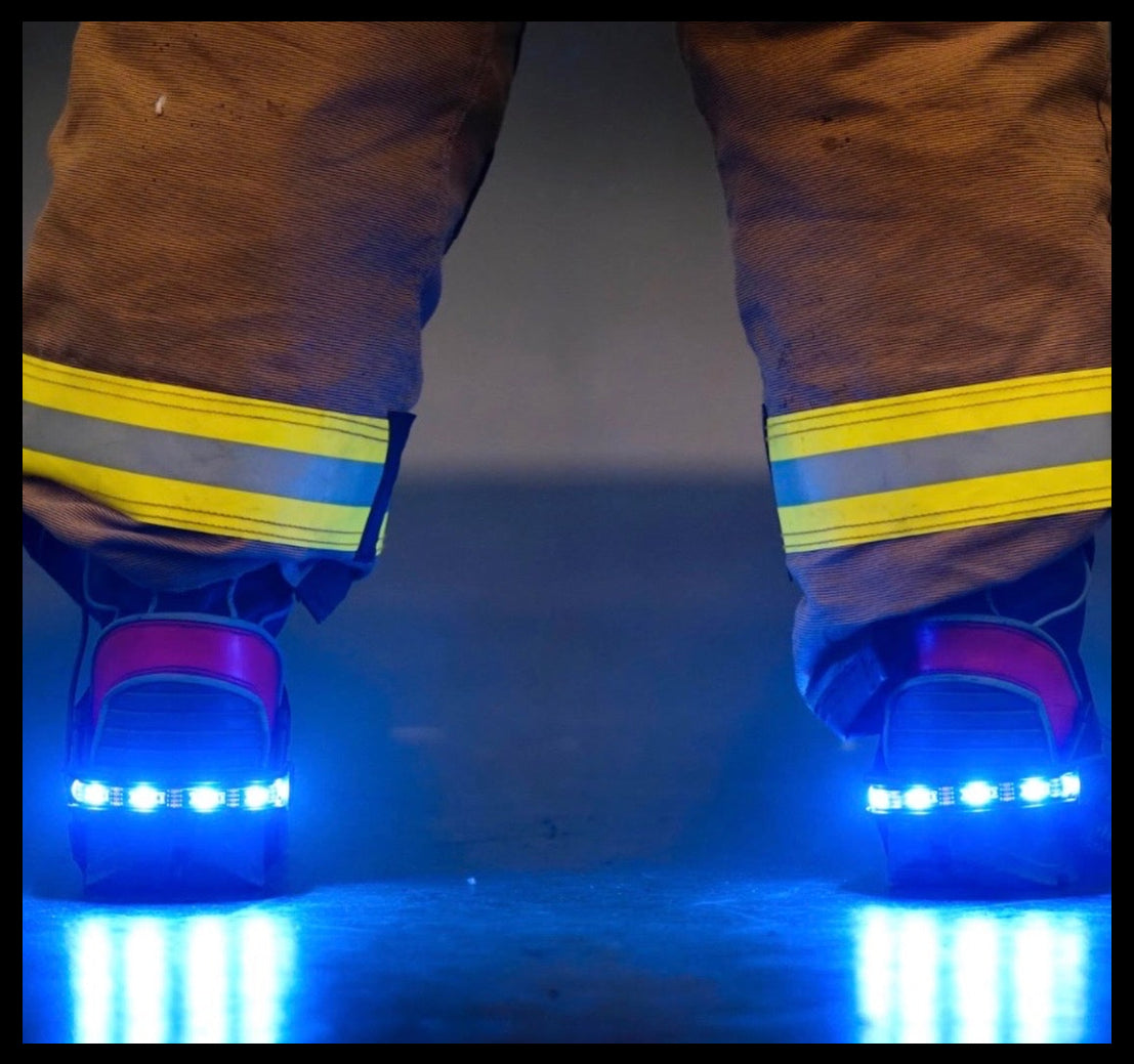 SafeStride enhances firefighter safety by delivering powerful LED visibility directly at ground level, where movement is most noticeable. Designed to integrate seamlessly with turnout boots, it helps reduce blind spots and improve visibility in smoky buildings and unpredictable highway environments.